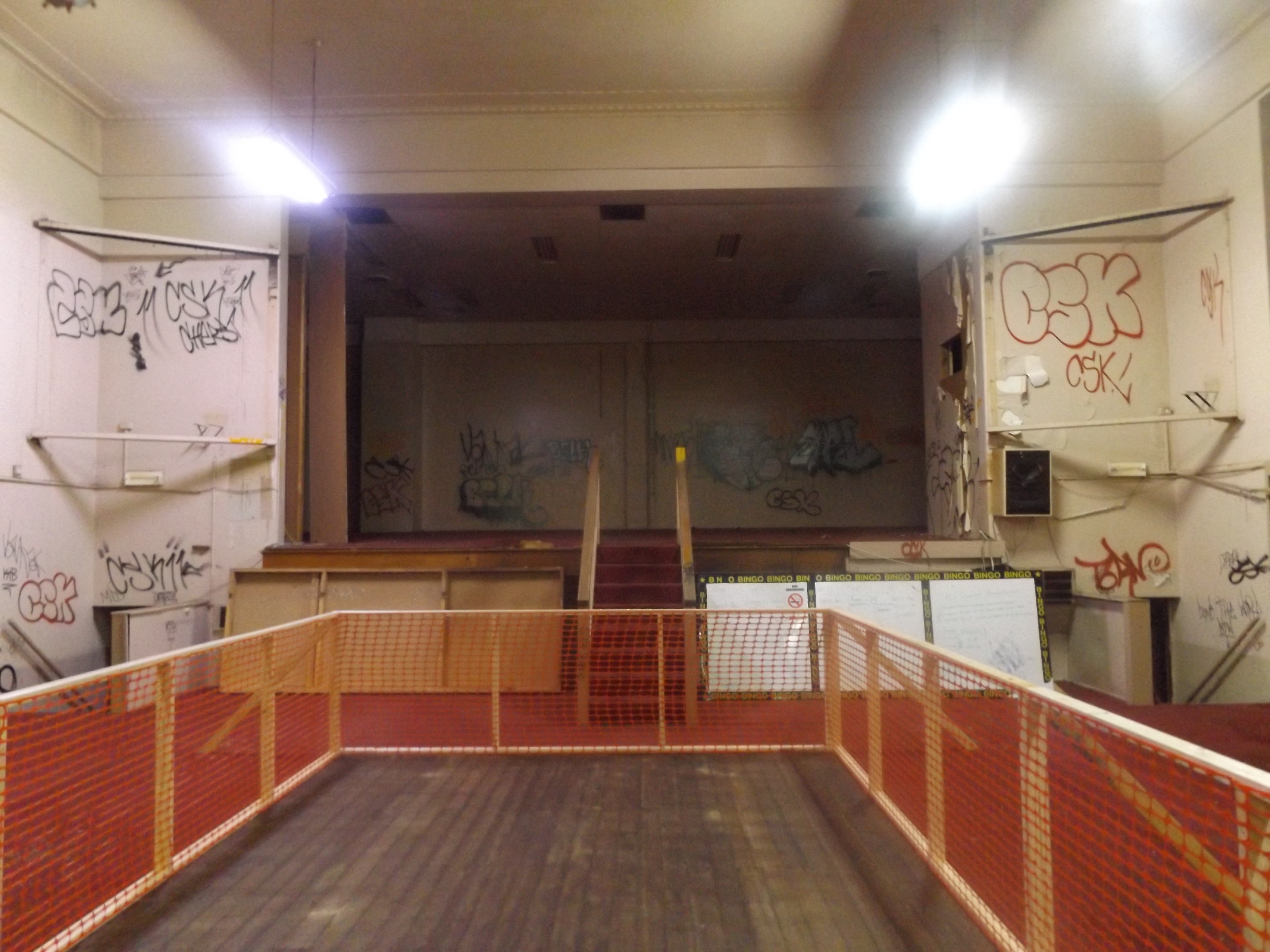 The restoration of the main hall has yet to be commenced. There are concerns over dressing rooms and a green room which is to be built underneath the main stage with the only access to the stage being a small lift. The proposed left is far too small to carry people and equipment and would need to be much larger. Council officers agreed and promised to amend the plan to create a larger lift.